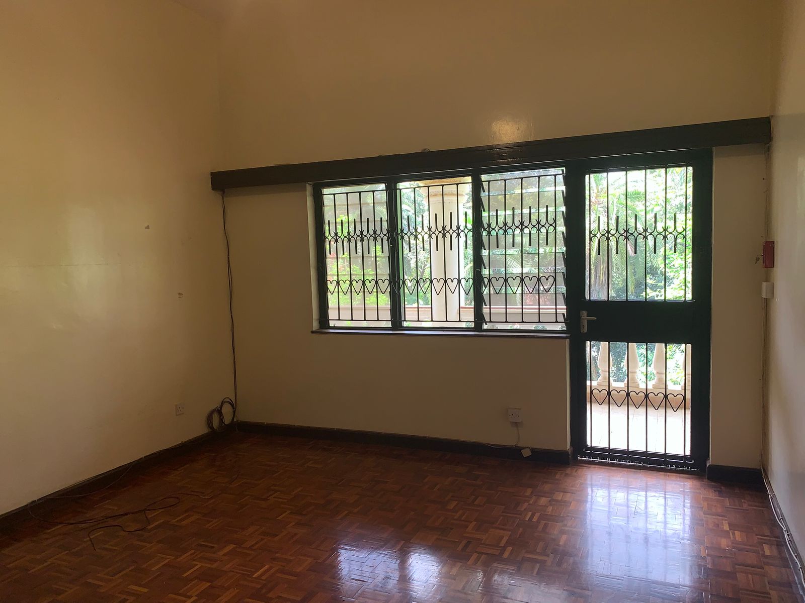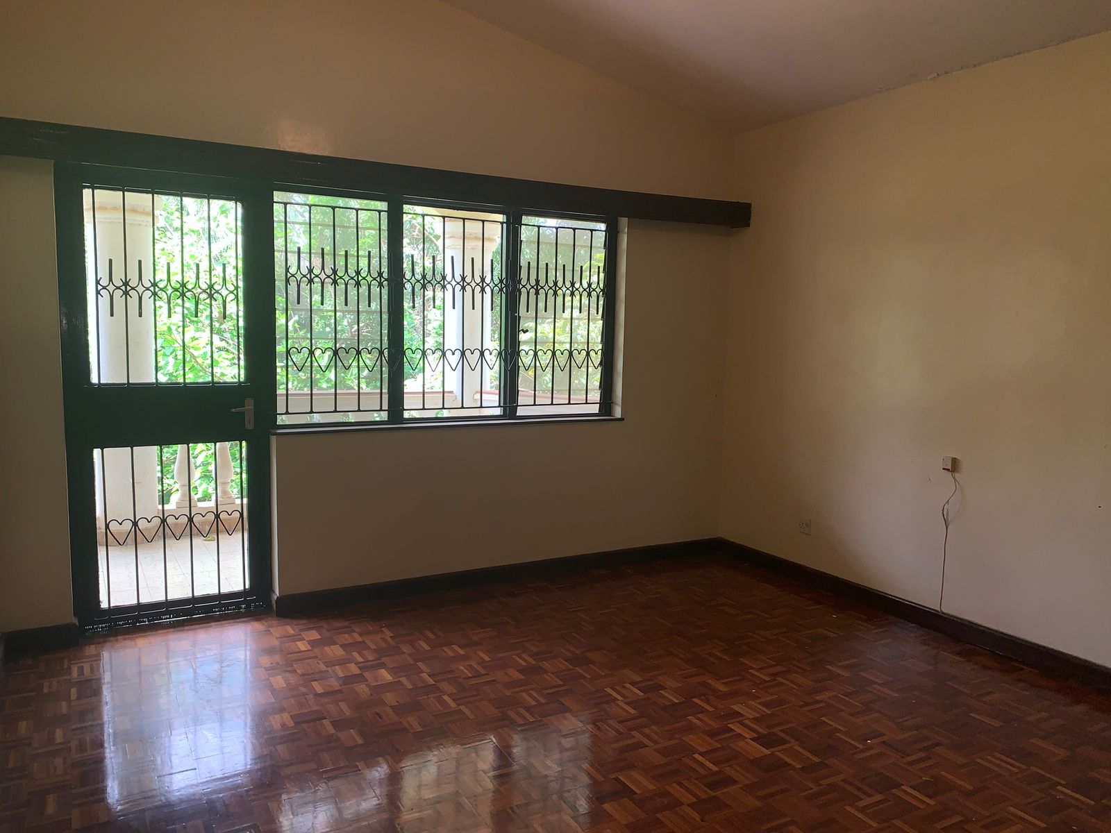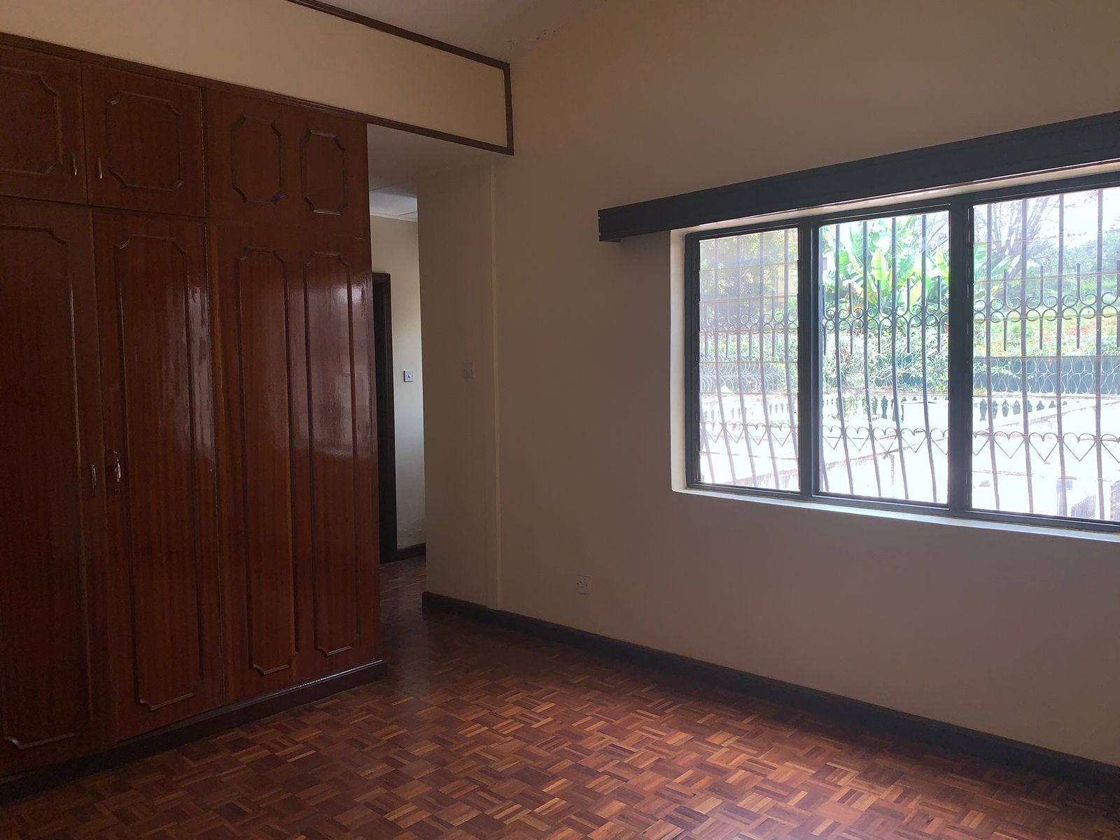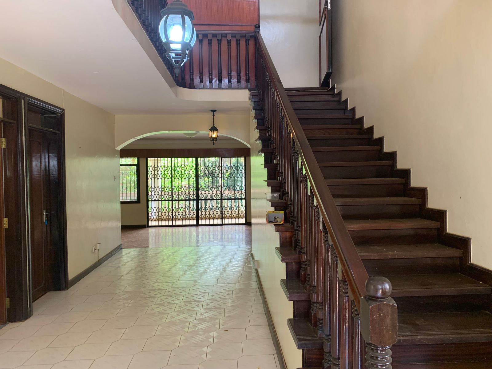 Big hard wood doors with grill opening up to the main house.