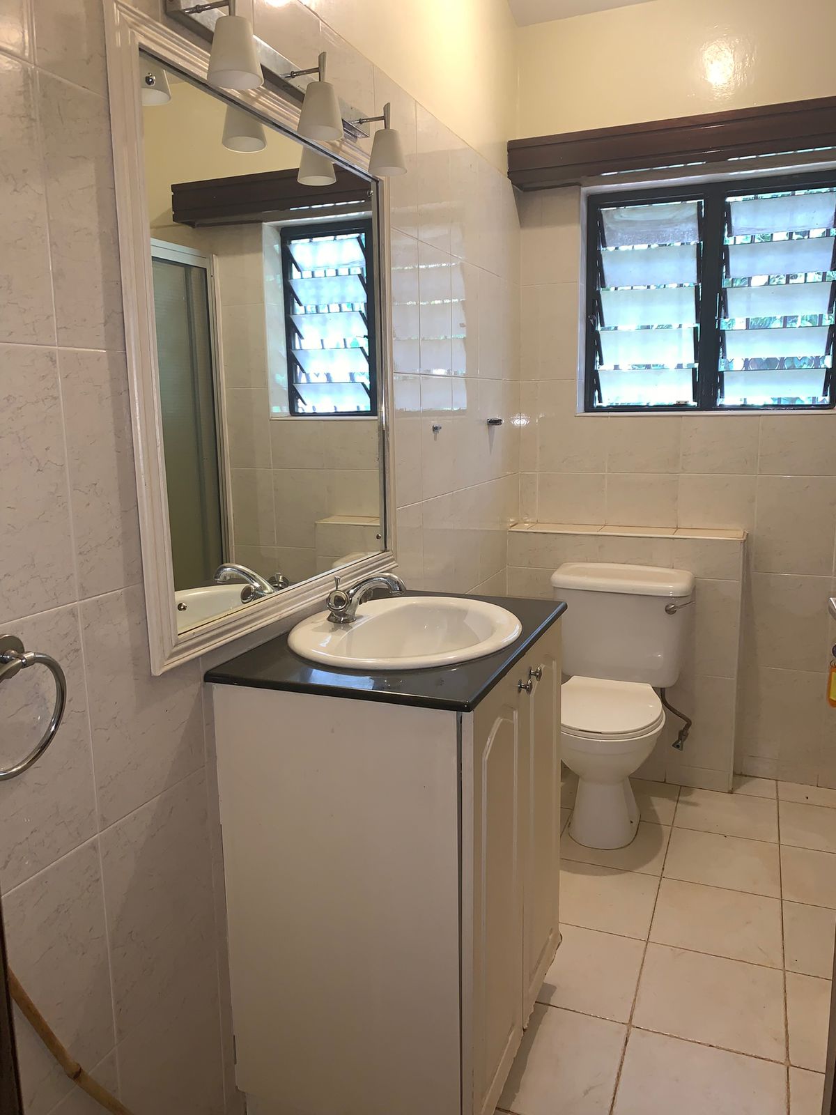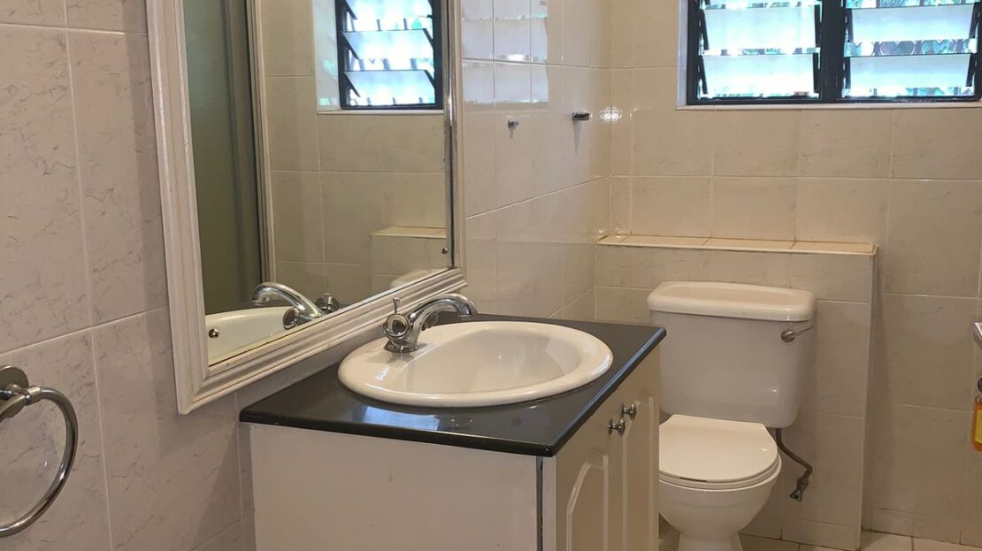 Guest bedroom en-suite with extra storage cabinets.