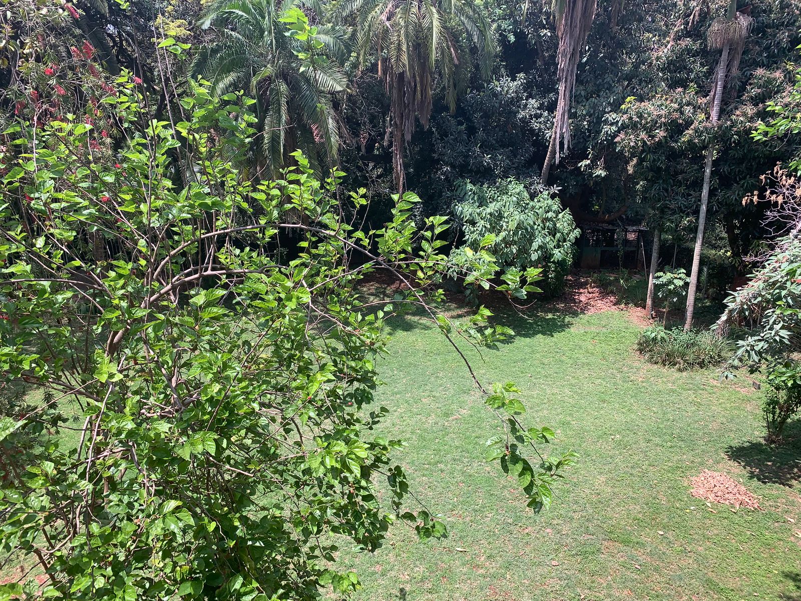 A large almost flat garden with mature trees